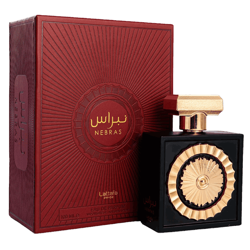 Nebras de Lattafa Perfumes es una fragancia de la familia olfativa Ámbar Vainilla para Hombres y Mujeres. Esta fragrancia es nueva. Nebras se lanzó en 2022. Las Notas de Salida son bayas rojas y mandarina; las Notas de Corazón son vainilla, cacao y rosa; las Notas de Fondo son azúcar, haba tonka, ámbar y almizcle.
