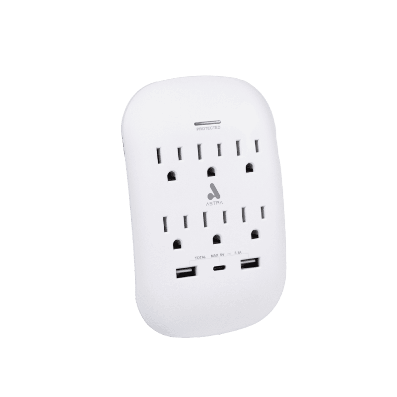 La Tomacorriente Protector 6 Tomas de Astra ofrece una solución integral para tu hogar u oficina, combinando protección contra sobretensiones y puertos USB de carga rápida. Con seis salidas estándar y dos puertos USB de 3.1 A más un USB-C de 5 V, garantiza tanto la seguridad de tus equipos como la versatilidad para cargar móviles y tablets sin adaptadores adicionales.